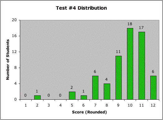 | Wed. Mar. 5 | Test 4 What it's on. Grade distribution. |