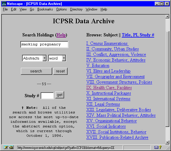 Accessing and Searching the Archives via ICPSR’s WEB Site