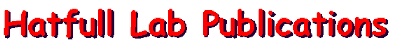 Brown, K. L., Sarkis, G. J., Wadsworth, C., and Hatfull, G. F. (1997) Transcriptional silencing by the phage L5 repressor. EMBO J. 16, 5914-5921. | Sarkis, G. J. and Hatfull, G. F. (1997). Mycobacteriophages in Mycobacteria Protocols. Humana Press Inc., Totowa, N.J. | Bardarov, S., Kriakov, J., Carriere, C., Yu, S., Vaamonde, C., McAdam, R. A., Bloom, B. R., Hatfull, G. F. and Jacobs, W. R. Jr. (1997). Transposon Delivery to Mycobacterium tuberculosis using mycobacteriophages. Proc. Natl. Acad. Sci. USA 94, 10961-10966. | Barsom, E. K. and Hatfull, G. F. (1997). A putative ABC-transport operon of Mycobacterium smegmatis. Gene. 185, 127-132. | Peña, C., Lee, M. H., Peduall, M. and Hatfull, G. F. (1997). Characterization of the mycobacteriophage L5 attachment site, attP. J. Mol. Biol. 266, 76-92 | Pedulla, M., Lee, M. H., Lever, D., and Hatfull, G. F. (1996). A novel host factor for integration of mycobacteriophage L5. Proc. Natl. Acad. Sci. USA 93, 15411-15416. | Pearson, R. E., Jurgensen, S., Sarkis, G. J., Hatfull, G. F. and Jacobs, J. R. Jr. (1996). Construction of D29 Shuttle Phasmids and Luciferase Reporter Phages for Detection of Mycobacteria. Gene. 183, 129-136. | Peña, C., Stoner, J., and Hatfull, G. F. (1996). Positions of strand exchange in mycobacteriophage L5 integration and characterization of the attB site. J. Bacteriol. 178, 5533-5536. | Barsom, E. K. and Hatfull, G. F. (1996). Characterization of a Mycobacterium smegmatis gene that confers resistance to phages L5 and D29 when overexpressed. Mol. Microbiol. 21, 159-170. | Hatfull, G. F. (1996). The Genetics of Mycobacterium tuberculosis. Current Topics in Microbiology and Immunology. 215, 29-47. | Hatfull, G. F. (1996). Molecular Biology and the Developing Countries : Prospects for single shot multidisease recombinant BCG vaccines. in Principles and Practice of Public Health in Africa. Eds. Sofoluwe, G. O., Schram, R., and Ogunmekan, D. A. pp426-431. | Nesbit, C. E., Levin, M. E., Donnelly-Wu., M. K., and Hatfull, G. F. (1995). Transcriptional regulation of repressor synthesis in mycobacteriophage L5. Mol. Micro. 17, 1045-1056. | Sarkis, G., Jacobs W. J. Jr., and Hatfull, G. F. (1995). L5 luciferase reporter mycobacteriophages: A sensitive tool for the detection and assay of live mycobacteria. Mol. Microbiol. 15, 1055-1067. | Hatfull, G. F. and Jacobs, J. R. Jr. (1994). Mycobacteriophages: Cornerstones of mycobacterial research in Tuberculosis : Pathogenesis, Protection and Control. Ed. B. R. Bloom. ASM, Washington. pp165-183. | Hatfull, G. F. (1994). Mycobacteriophage L5 : A toolbox for tuberculosis. ASM News. 60, 255-260. | Pascopella, L., Collins, F. M., Martin, J. M., Lee, M. H., Hatfull, G. F., Bloom, B. R., and Jacobs, W. R. Jr. (1994). Use of in vivo complementation in Mycobacterium tuberculosis to identify a genomic fragment associated with virulence. Infect. Immun. 62, 1313-1319. | Lee, M. H. and Hatfull, G. F. (1993). Mycobacteriophage L5 integrase-mediated site-specific recombination in vitro. J. Bacteriol. 175, 6838-6841. |
