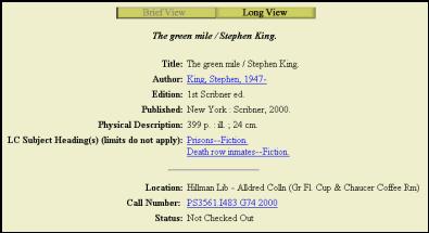 collection the item is in, the item’s call number and if the item is available or checked out.