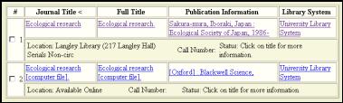 example, to find the magazine titled Ecological Research, you would type ecological research.