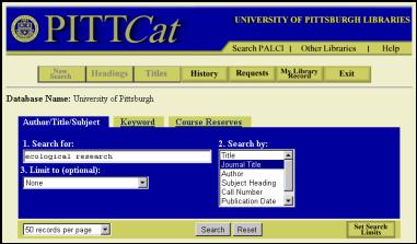 Access PITTCat at http://pittcat.pitt.edu, and go to the Author/Title search screen.