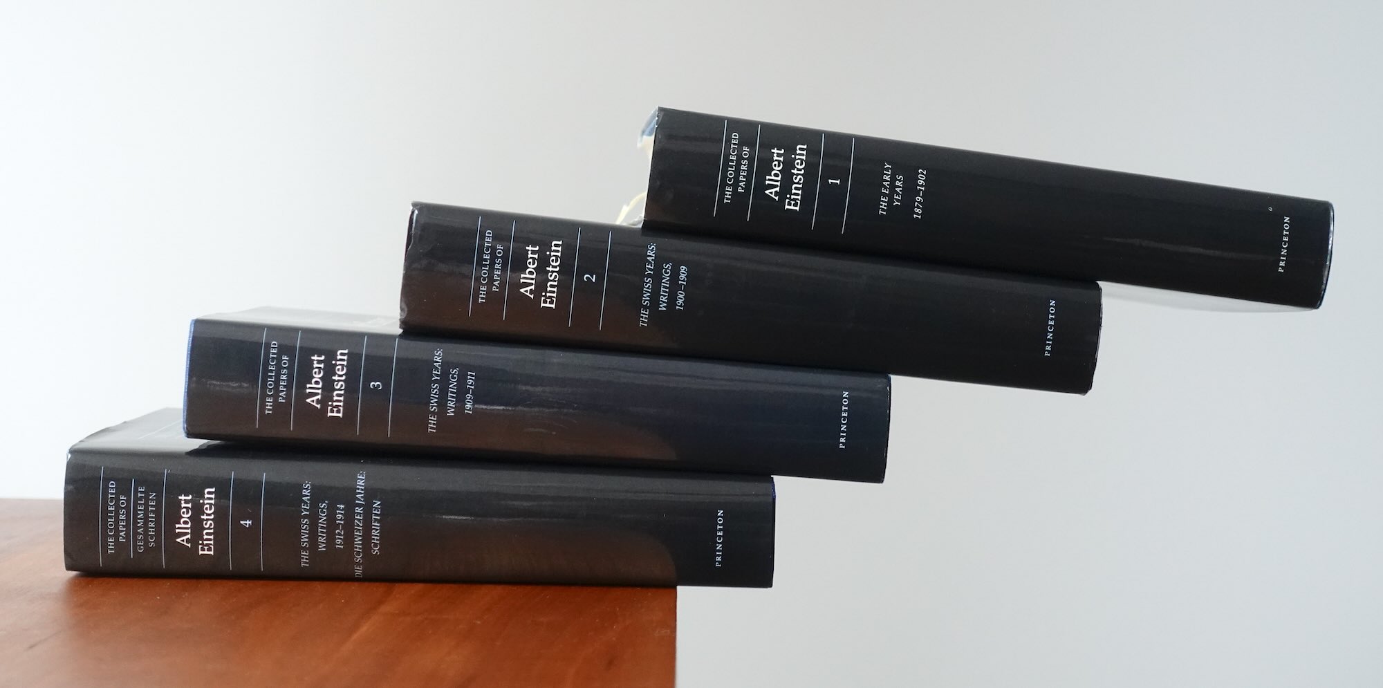 The figure above shows the idealized case in which the blocks have been moved over to the very last configuration in which stability is possible. I tried to come as close to this configuration as I could, using books from my book shelf. Here's the result. I came very close to this idealized case. The slight compressibility of the books led to some tilting of the books.