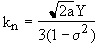 where a is the difference between the particle separation and the sum of their radii, and kn is the normal spring constant -- which is related to the Young's modulus, Y, and the Poisson ratio, s, by: