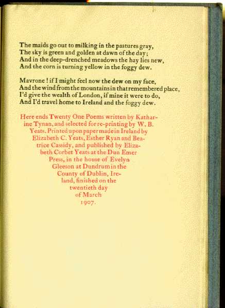 Twenty One Poems By Katharine Tynan: Selected By W. B. Yeats (1903)