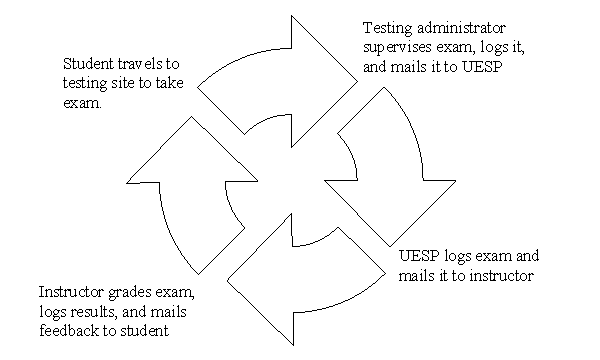 Although these procedures support the separation in time and space of the learner from the learning facilitator, they introduce inherent administrative difficulties and restrict the pedagogical benefits derived from the evaluation process itself. The procedures involve mailing completed exams from off-campus testing sites to the Pittsburgh campus, then distributing the exams to the appropriate faculty member on campus for scoring, and finally, mailing feedback to the student. These steps introduce a significant time delay between exam administration and the time students receive feedback on their performance. This time delay not only reduces the relevancy and effectiveness of the feedback for students but also has been found to inhibit continuity in students’ subsequent progress. In addition, reliance on mail services introduces security and reliability risks and incurs considerable expense.