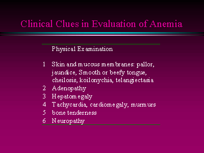 | Evaluation of the anemic patient is best