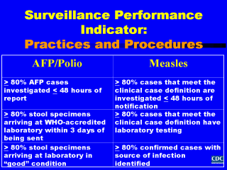 example concerning surveillance for cases of AFP and measles, the surveillance system is