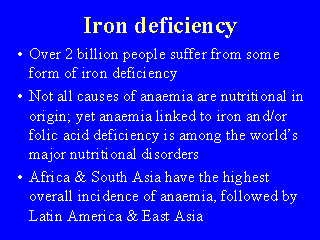 Iron deficiency is the most commmon nutritional disorder in the world with