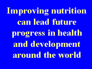 ![]() ![]() ![]() | | As is well outlined in the 1998 State of the World's Children Report, advances in nutrition and in how to best apply our accumulated knowledge, provide many new opportunities for improving the lives of millions of children and their families. Much more needs to be done to reduce the global toll of severe and moderate malnutrition. Governments in poor and rich countries must |
