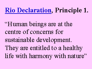 The Earth Summit in Rio de Janeiro in 1992 heralded a new approach to national and international development and environment planning. The world's leaders recognized the importance of investing in improvements to people's health and their environment as a prerequisite for sustainable development. |