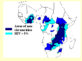 Areas of high HIV seroprevalence tend to overlap those with low circumcision rates In a context where hygiene is minimal, non-circumcision enhances local infections and increase HIV infectivity |