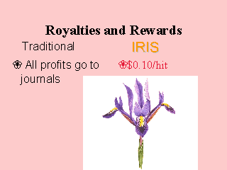 With traditional publication all royalties go to the journals. However with almost all other forms of intellectual property (e.g. art, patents, books, CDs, etc.) the people creating the intellectual property are rewarded. With the Internet a more equitable distribution of sharing of profits is possible.
