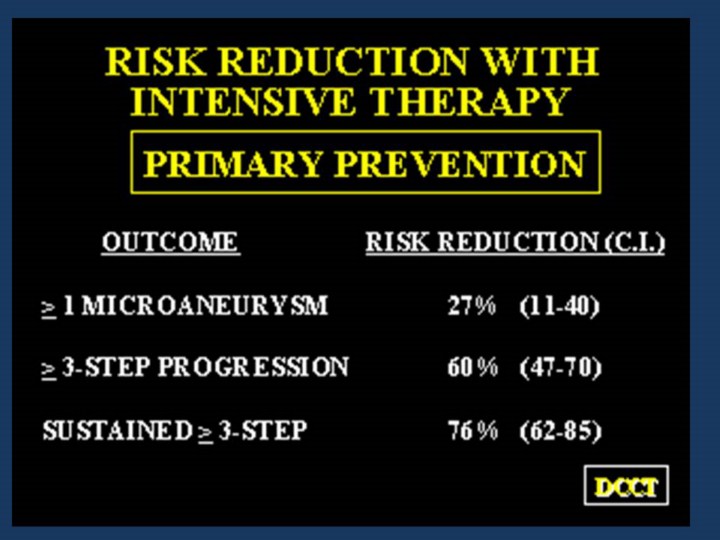 Impressive decrease in the progression of retinopathy was seen in the primary prevention cohort and (not shown) in the secondary prevention cohort. |