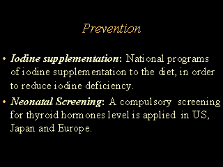 of unwanted effects. Neonatal screenig is an important measure of prevention of hypothyroidism. |