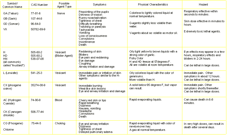 Chemical Agents, Type, Symptoms and Hazard