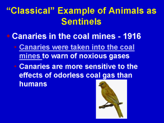 “Birds and mice may be used to detect carbon monoxide, because they are much more sensitive to the poisonous action of the gas than are men. Experiments by the Bureau of Mines show that canaries should be used in preference to mice, sparrows, or pigeons, because canaries are more sensitive to the gas. Many experiments have shown that if a canary is quickly removed to good air after its collapse from breathing carbon monoxide it always recovers and can be used again for exploration work without danger of its becoming less sensitive. Breathing apparatus must be used where birds show signs of distress, and for this reason birds are of great value in enabling rescue parties to use breathing apparatus to best advantage.”