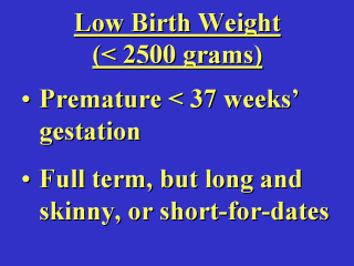 Low birth weight infant is more likely to lead to infant death. In developed countries, 2/3 of low birthweight (LBW) babies are premature. In developing countries, only 1/5 of LBW are premature, while 4/5 are full term but short or thin. |