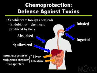 This pathway involves detoxifying things that are foreign chemicals, as well as things we generate in our body, things we inhale, things we ingest, things that we absorb through the skin, and things that are synthesized in our own tissues, particularly the liver. And the detoxification pathway involves a series of proteins, oxygenases that oxidize chemicals, conjugation enzymes that attach sugars to them to make them soluble, and proteins that can now pump these solubilized substances out of cells, excrete them into the bile, into the intestinal tract so you can get rid of them.