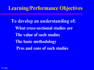 study used by Epidemiologists. Additional textbook resources can be found in the following annotated bibliographies on my Web site: Annotated Biostatistics Bibliography Annotated Epidemiology Bibliography Annotated Research Methods Annotated Research Practice Annotated Research Practice (M - Z) Annotated Statistics BibliographySources for this lecture include: L, Gordis (1996) Epidemiology, R.M. Page, G.E. Cole & T.C. Timmreck (1986) Basic Epidemiological Methods and Biostatistics, and W.H.O. (1990) Basic Epidemiology. |