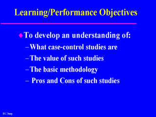 This lecture seeks to provide you with a basic understanding of Case-Control Studies. These studies are simple and economical to conduct and are usually used to study rare diseases.