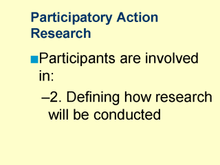 The involvement of community leaders and participants in selecting the research questions and approaches means they will have an investment in the continued success of the research and the action plans that result from the analysis of the study results. |