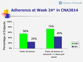 Regimen adherence measurement at week 24 or last assessment while on randomized therapy