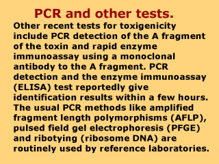 Random amplified polymorphic DNA (RAPD) is also used convenially since often groups by ribotypes can be correlated with RAPDs as in the illustration from Kombarova et al. Emerg Infect Dis, Vol. 7, 2001.