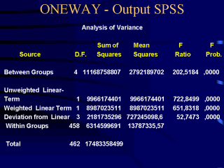 El resultado del test Oneway es un valor de F que solo indica si al menos una