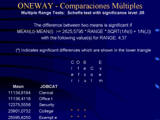 Por tanto, hay dos subgrupos estadíticamente homogéneos, uno de salario bajo formado por los niveles 1+2+3 (trabajos de bajo nivel) y otro de salario alto formado por los niveles 4+5 (trabajos de alto nivel). |