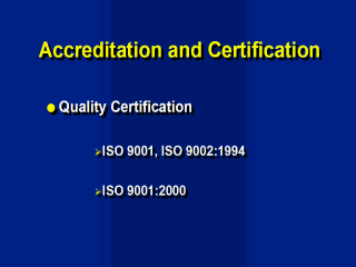 Is the recognition of an effective quality management system meeting the requirements of the ISO 9000 series. This standard has some elements such as maintaining equipment which affect the laboratory, but it does not review the laboratory’s technical competence on the whole. Auditors are systems auditors and do not need any technical or laboratory experience. |