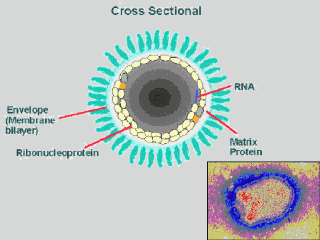 | The electron micrograph of the rabies virion, courtesy of the Pasteur Institut, Paris, shows a 75 nm mean diameter, and a length varying between 130-300 nm (mean: 180 nm); spike-like projections 9 nm long can be seen on the viral envelope. |