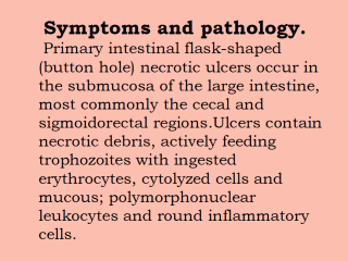chronic protracted diarrhea, dysentery (minority), cramping abdominal pain