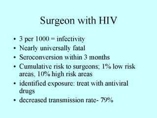 The infectivity of HIV is less than that for HBV and for HCV, but is nearly universally fatal. The risk is also lower but substantial. If exposed then treatment should be instituted with antiviral drugs which decreases infectivity by 79%.