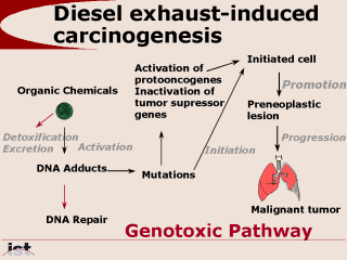 Here the hypothetic genotoxic pathway is illustrated. It is not known which type of pathway is predominant or if both types of pathways are relevant. Reference: K.M.Nauss and the Health Effects Institute Diesel Working Group, April 1995