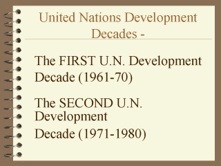 Women to report on the role of women in the development plans of member governments The Second U.N. Decade called for incorporation of women into the total development effort. |