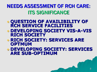 SERVICES IN THE FIELD OF RCH CARE IS SUB-OPTIMUM AND VERY INADEQUATE.