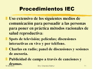 en puntos críticos en la ciudad/ aldea. Uso de medios impresos colocando anuncios y hechos en periódicos y revistas. Colocando posters en lugares públicos distribuyendo folletos ilustrando el tema. |