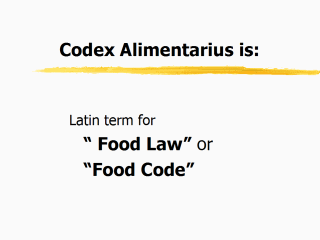 Codex Alimentarius is a group of international food standards, adopted by the Codex Alimentarius Commission and uniformly presented. The very term Codex Alimentarius is taken from the Latin term Codex Alimentarius, meaning Food Law or Legal Food Code. The Codex Alimentarius standards cover all basic food types, raw, semi-processed and processed, that are intended for distribution to the costumers. The regulations of the Codex refer to food hygiene and quality, including microbiological standards, food additives, pesticides and residues from veterinary drugs, contaminants, food labeling and marketing, methods for sampling and hazard analysis, food import and export, certification system, etc.