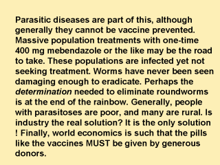 Certainly, we want a healthier, happier world with the amelioration of poverty partly by lessening the disease burden, but who's going to pay for it? Is this wormy world willing to clean up the mess?