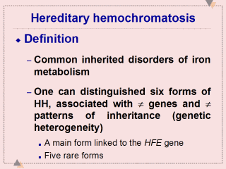 hemochromatosis (HH) is a common inherited disorders of iron metabolism.