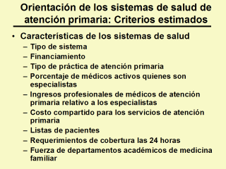 primaria fuerte. Fuente: Starfield B. Primary Care: Balancing Health Needs, Services, and Technology. New York: Oxford University Press, 1998. |