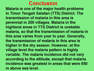 Although there was not a significant correlation between rainfall and malaria incidence, the malaria seemed to peak in the dry season.
