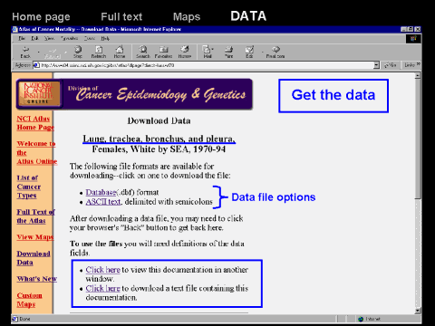 Data are available in dBase format (dbf) and ASCII text format (txt). These two formats are easily handled by either Windows-based or Macintosh computers. Variable definitions are available for on-screen viewing or downloading (txt format).