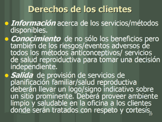 a tener los servicios de planificación familiar/salud reproductiva sin tomar en cuenta su sexo, raza, religión, color y status socioeconómico. Servicios de planificación familiar deberán estar disponibles a las personas cercanas.