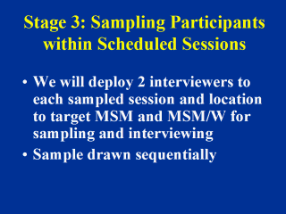 • First cycle begins when interviewers arrive at site; interviewers count potential participants and randomly select 1