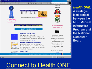 Health ONE is a multilingual, interactive multimedia health portal launched by the National University of Singapore in 1997 and funded by the National Computer Board. In this presentation, references will be made to Health ONE in the discussions of the various patient education strategies listed in the previous slide. |
