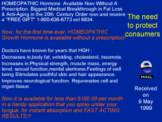| The ability to easily access medical knowledge and information also brings with it the real danger of misinformation of the consumer. Health information on the Internet can be biased, misleading and even wrong. This e-mail was received by the author who promptly noted the wild and unsubstantiated claims! |