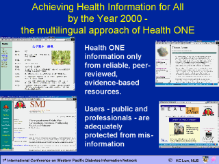 | At Health ONE, no effort is spared to ensure that information available from the health portal is reliable, peer-reviewed and evidence-based. By adopting a multilingual approach, the Health ONE development team believes that health information for all by the year 2000 is achievable through the World Wide Web. |