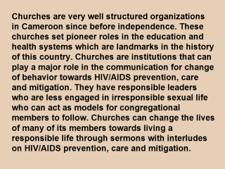 faith-based institutions which are good fora for HIV/AIDS intervention